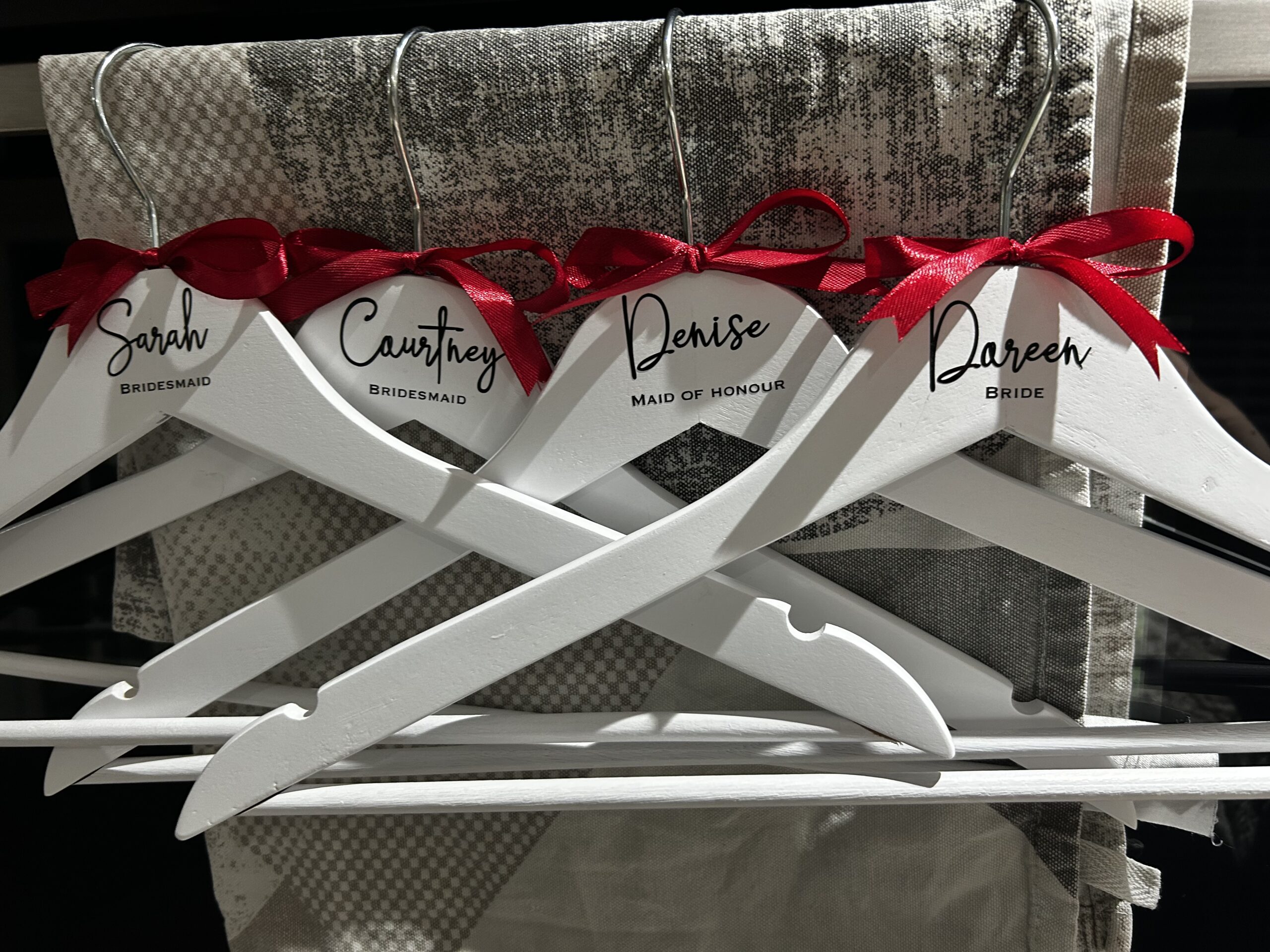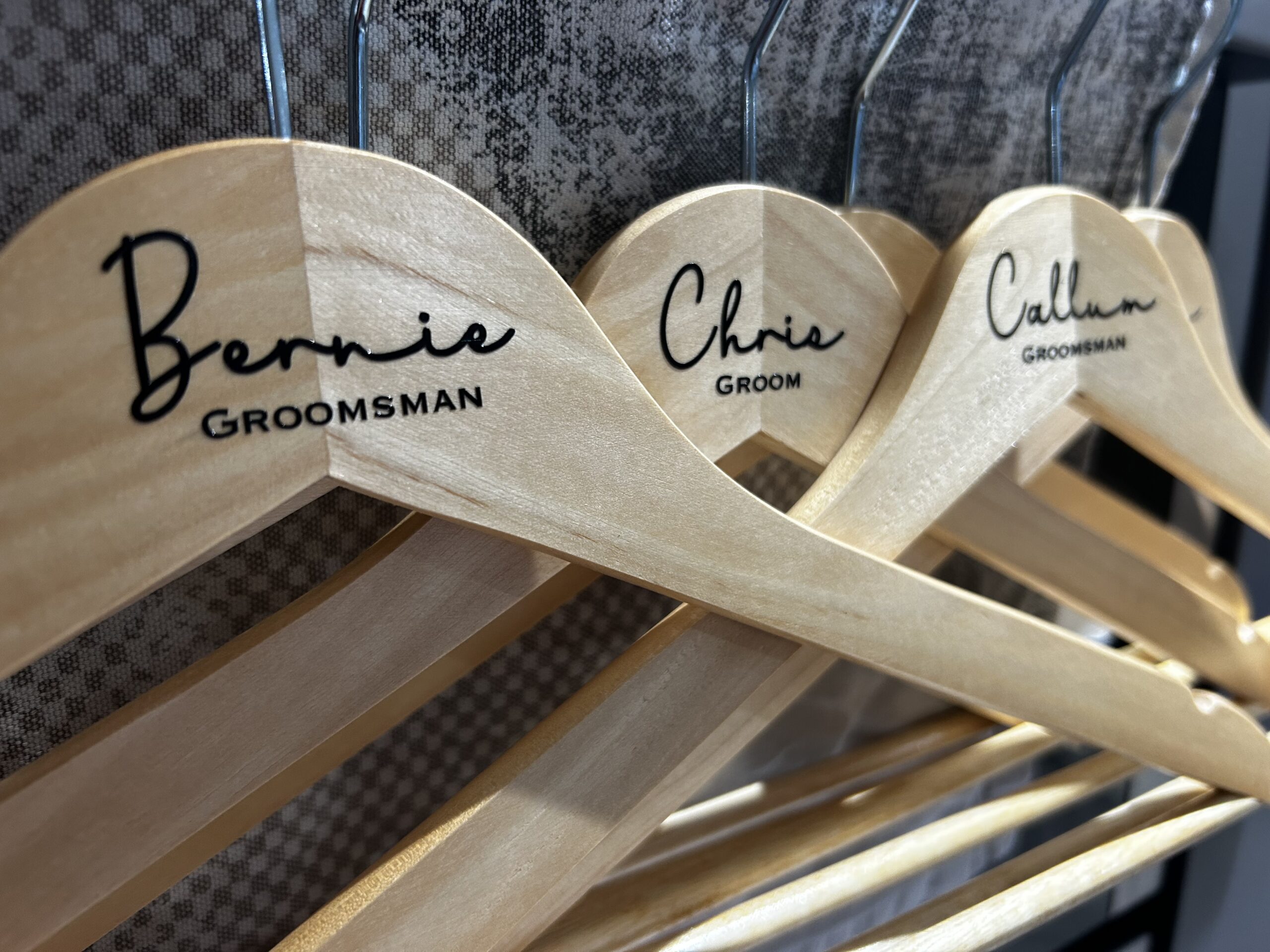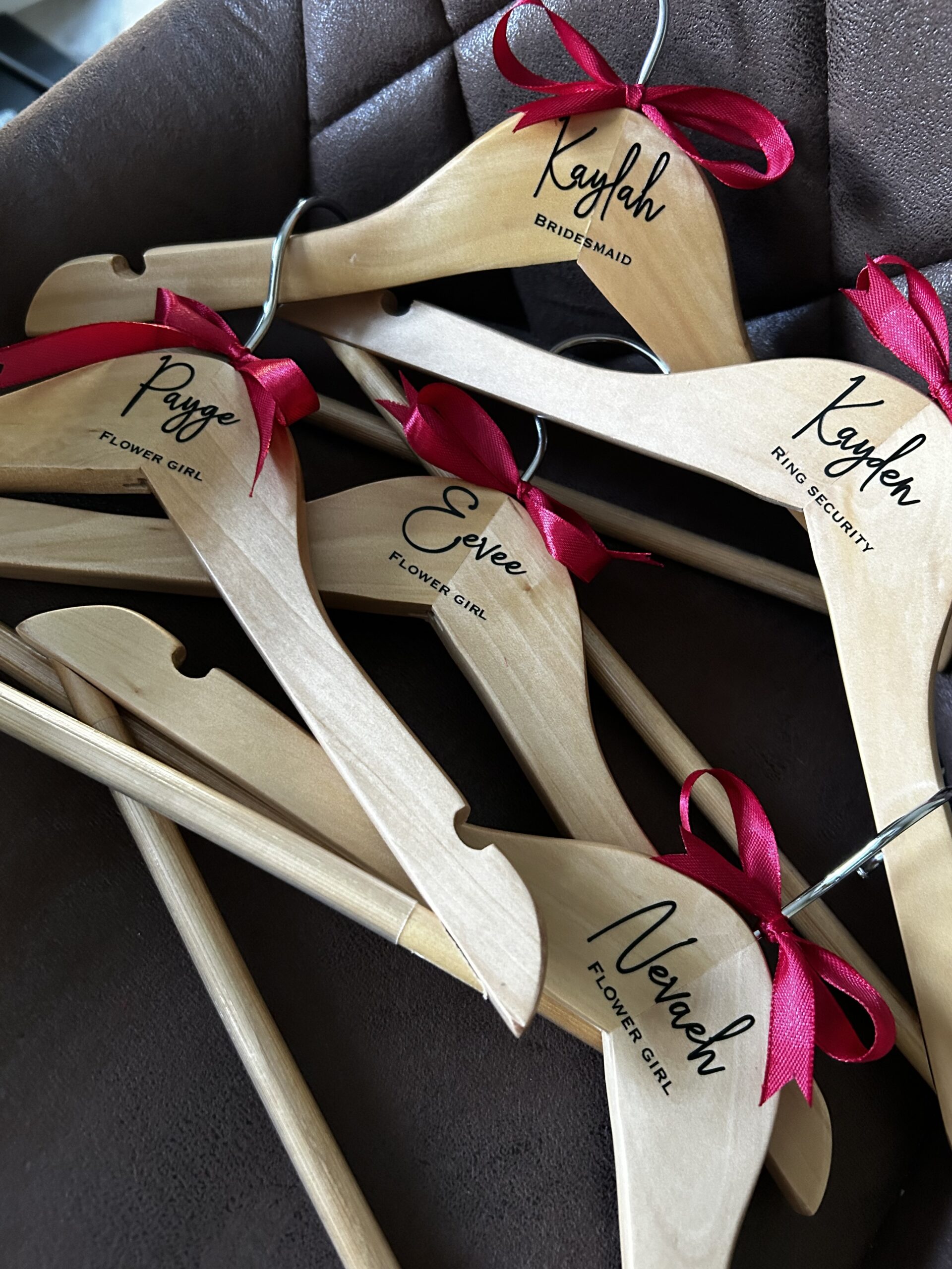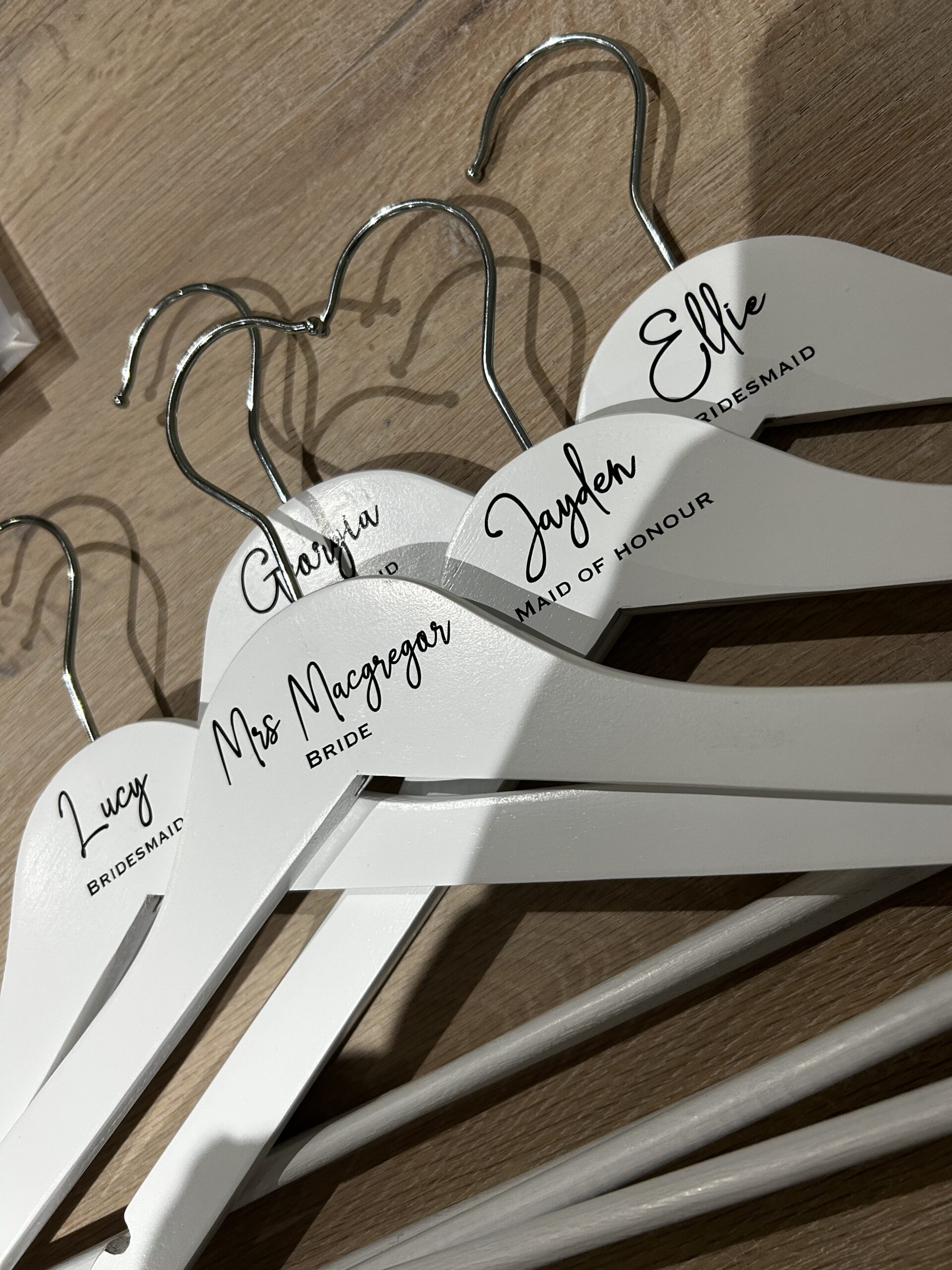 Make your special day even more memorable with our elegant custom coat hangers, personalized with names, roles, and dates. Perfect for weddings, events, and celebrations, these hangers add a unique and personal touch to your attire display. Crafted with care and attention to detail, they serve as both a practical accessory and a cherished keepsake for your guests and bridal party. Celebrate your moments in style with our beautifully customized coat hangers.