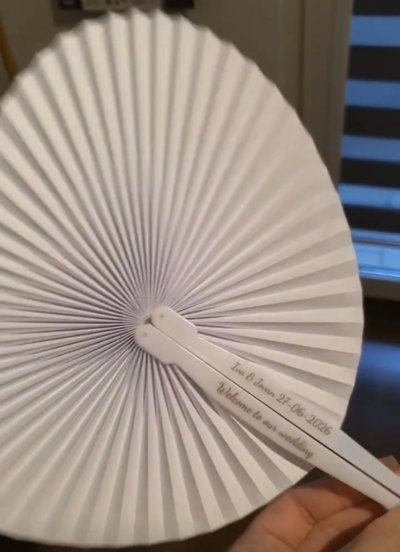 Stay cool in style with our beautifully crafted personalised folding fans. Lightweight, durable, and easy to carry, these fans are the perfect blend of practicality and elegance. Each fan can be customised with a name, date, or special message, making them ideal for weddings, parties, corporate events, and special occasions.