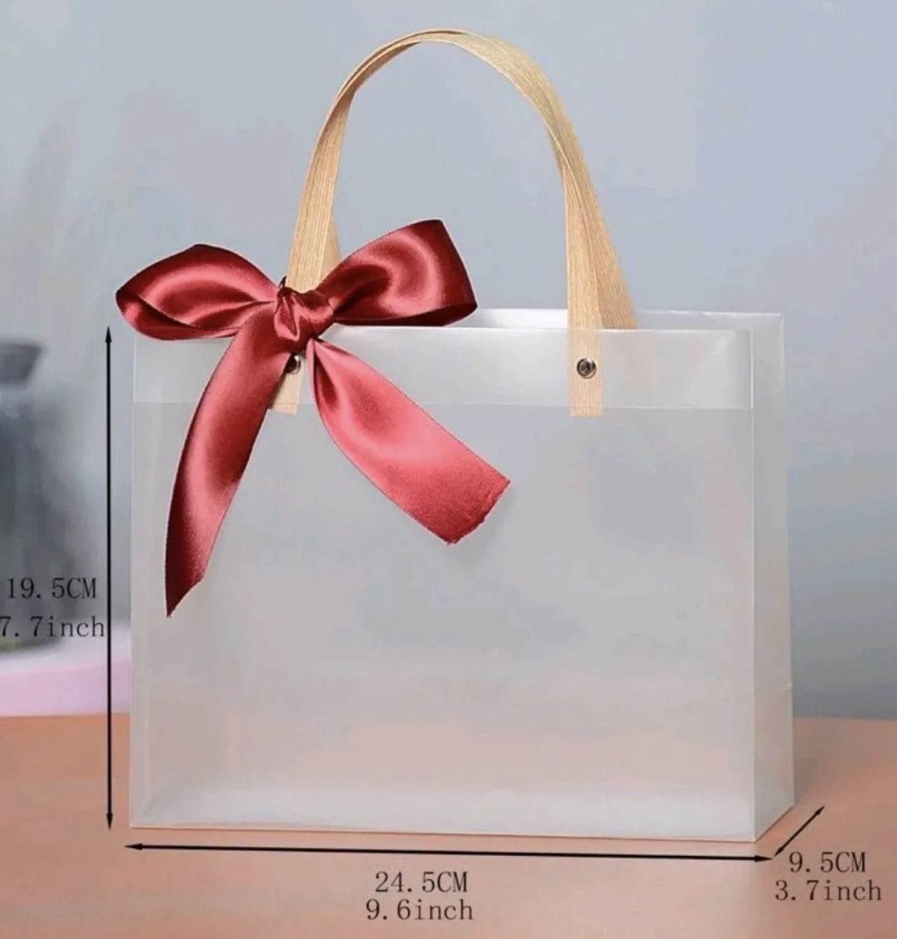 Each bag can be personalised with a name, initial, logo, or short message, making it ideal for bridal parties, birthdays, corporate gifts, or special occasions. The semi-transparent frosted design allows a subtle glimpse of the contents while keeping everything beautifully presented.